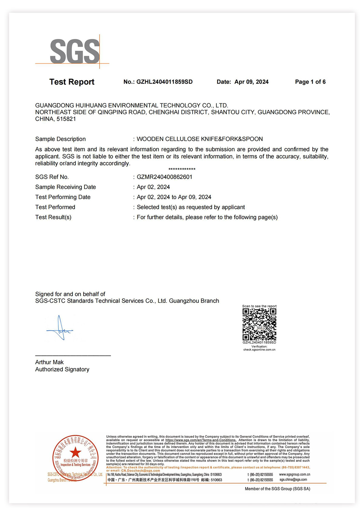 木质纤维素刀叉勺 FDA 21 CFR 175.300 食品安全接触 检测报告