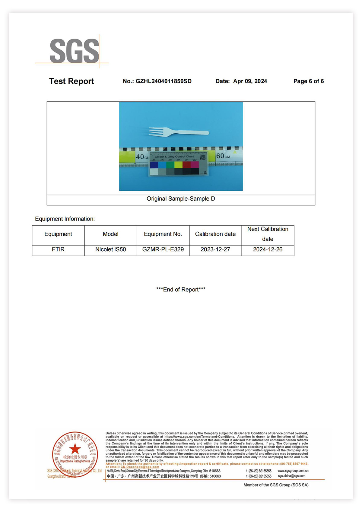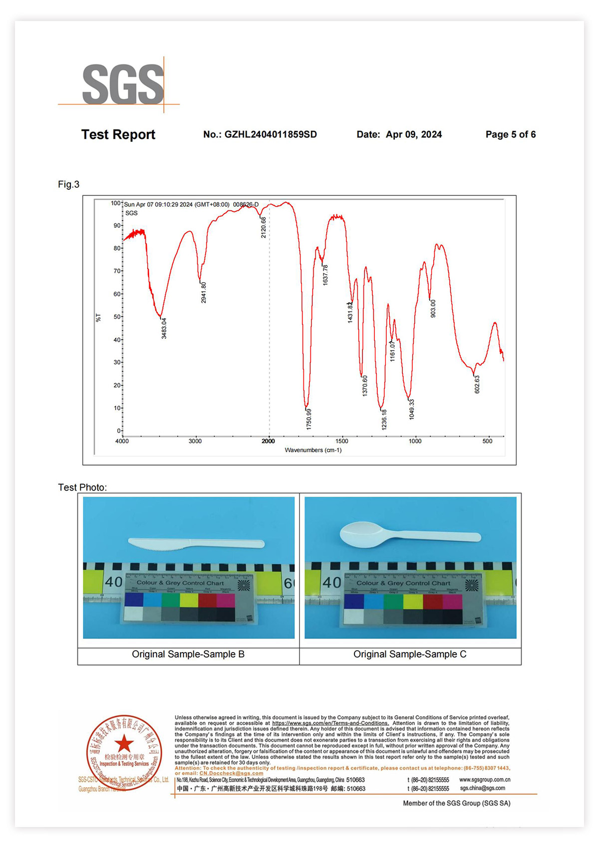 木质纤维素刀叉勺 FTIR傅里叶变换红外光谱 检测报告