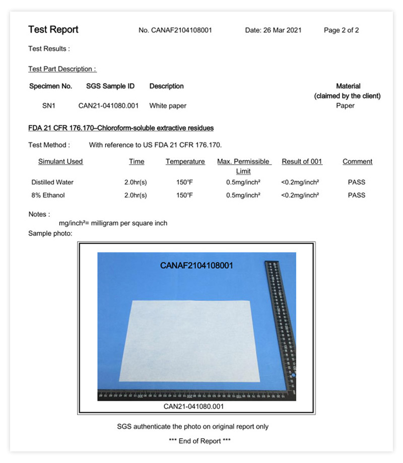 FDA Food Safety Test Report